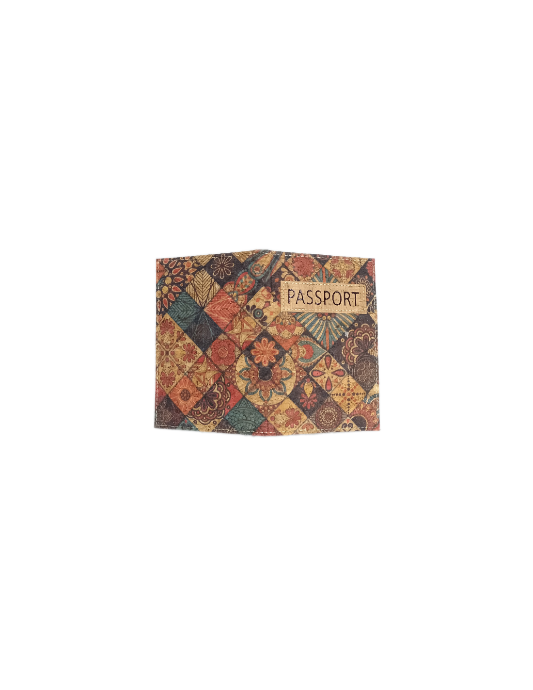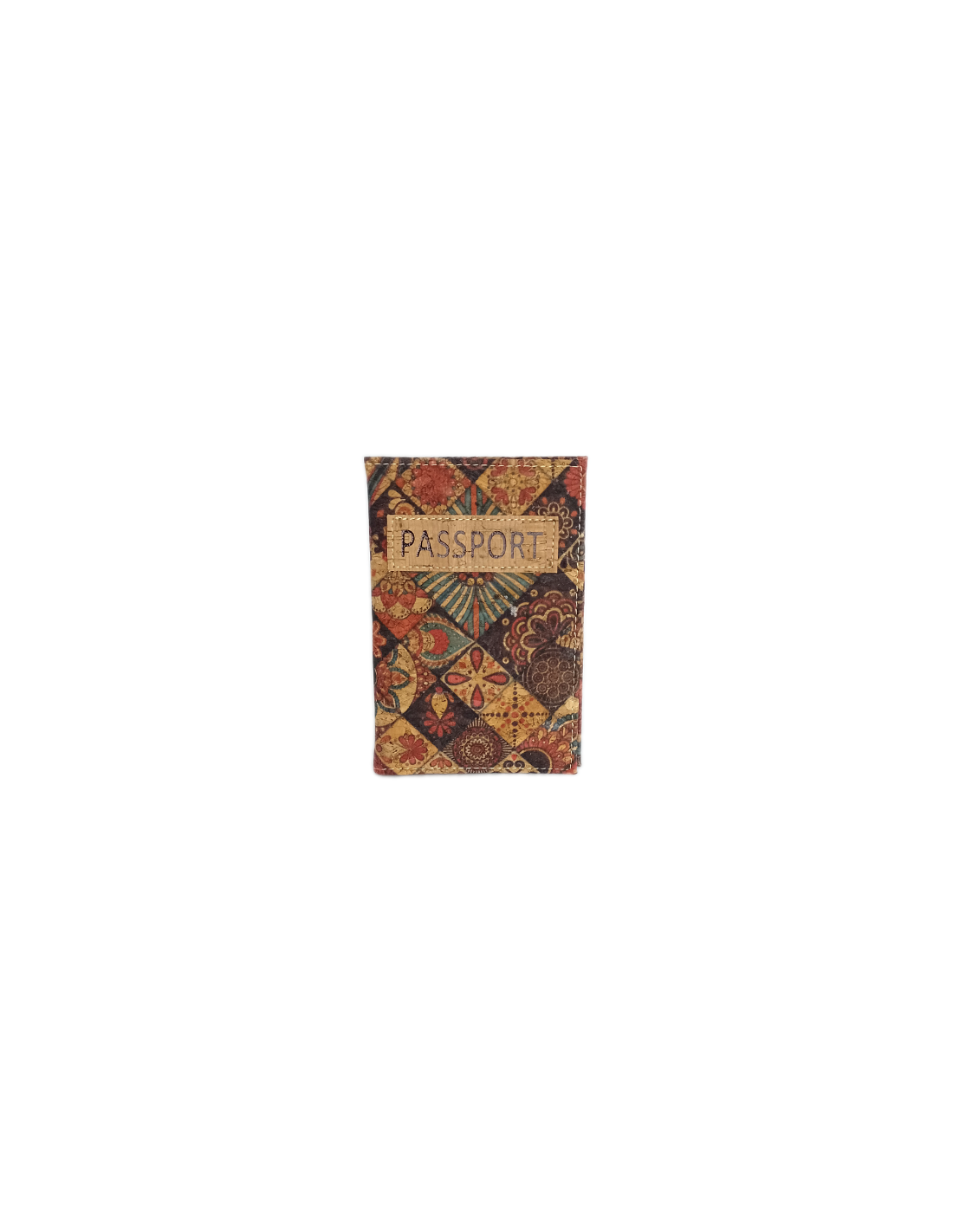 Nice cork case to store your passport in style. With decoration in arabesque type pattern.
